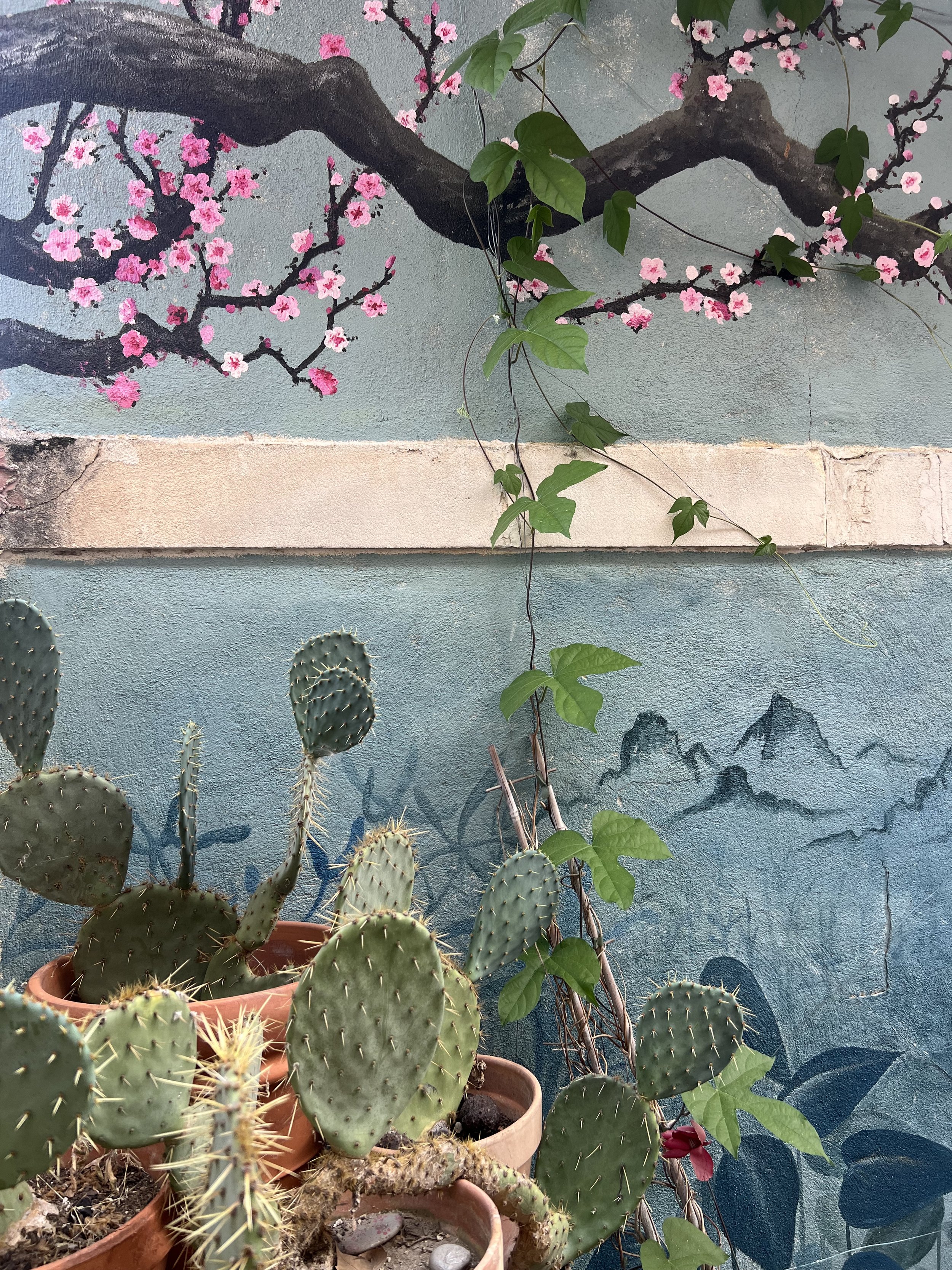 La fresque prend le relais du jardin lorsque la végétation se fait plus discrète.